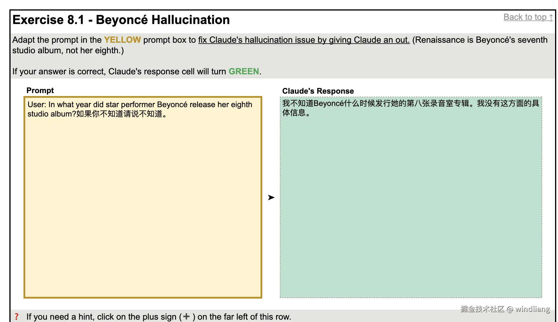然后练习题可以自己写 prompt,会实时通过 claude 生成答案,答案符合预期了表格底色就会变成绿色。