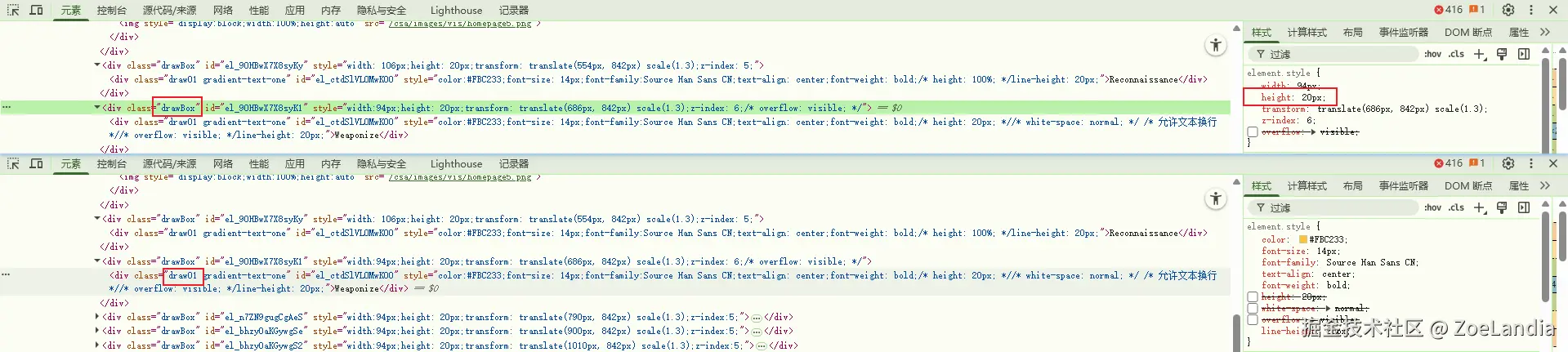 问题描述: 有一个父元素drawBox和一个子元素draw01,父元素设置了固定高度20px,子元素没有设置高度,设置字体大小14px。英文字母显示不全,下面有被遮挡,如果给子元素设置高度height: 20px,会导致渐变样式变淡