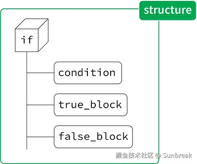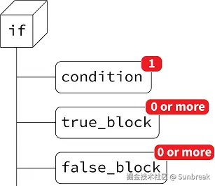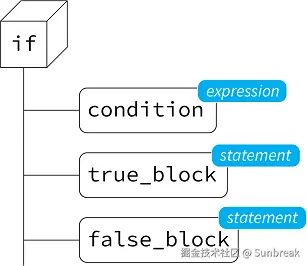 很简单,condition 是一个表达式(expression),true_block 包含的是语句(statements),false_block 也同样包含语句。