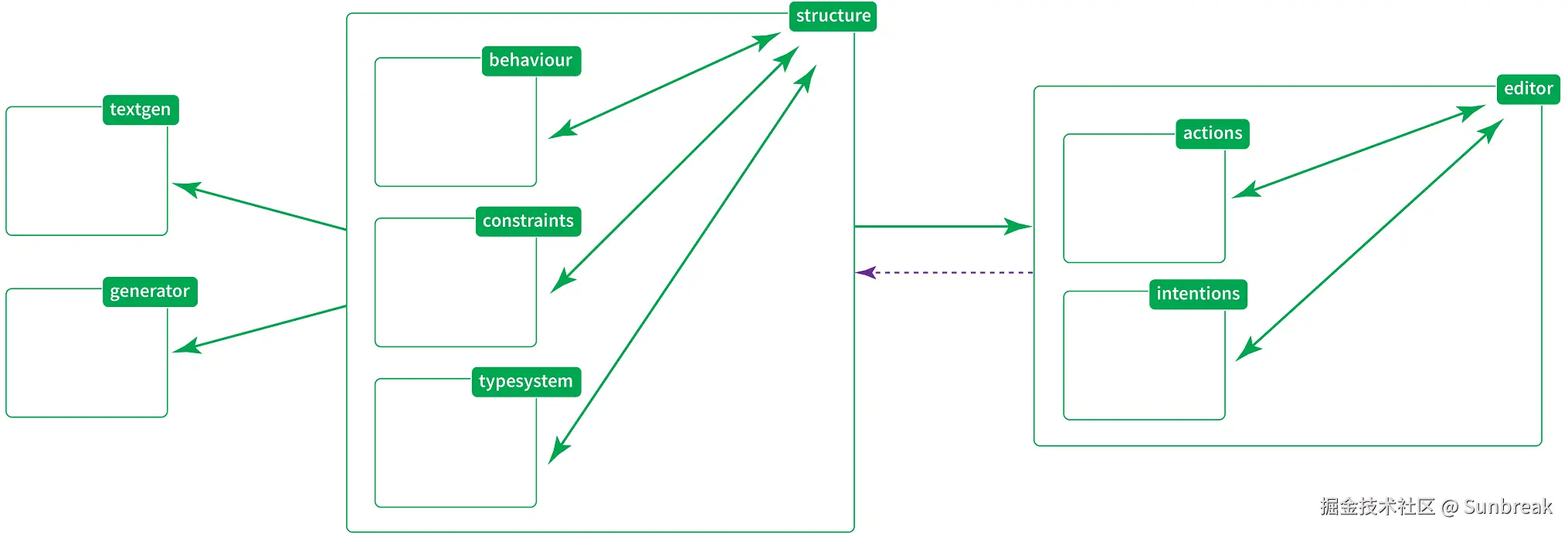 - 编辑器(Editor):是语言用户的核心部分,并与编辑的动作(Actions) 和用户友好的意图(Intentions) 相关联。