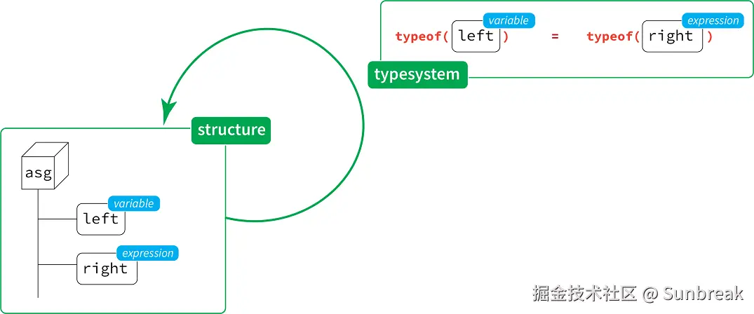 TypeSystem(类型系统)方面允许我们指定左部分和右部分的类型应该相同。