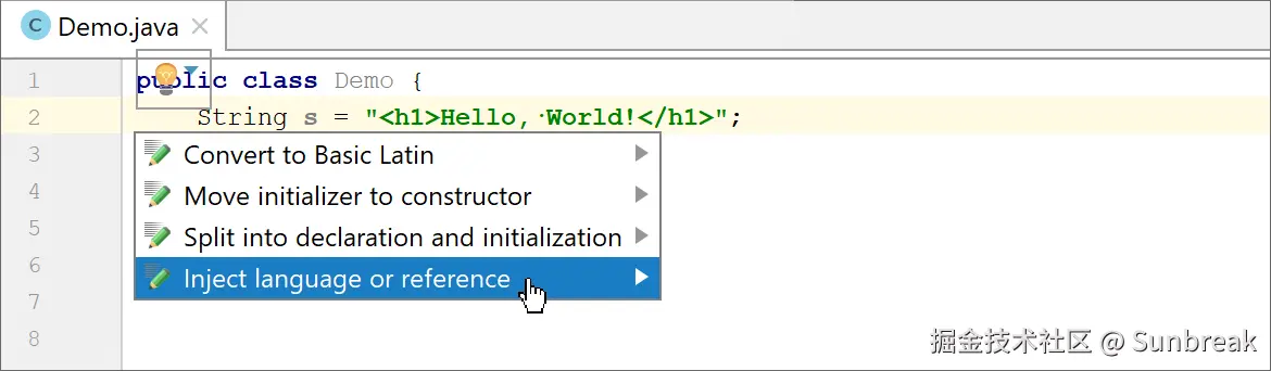 Example of intentions in IDEA.
