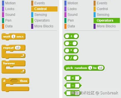 Scratch 有用于表示条件语句、循环、事件(以及许多其他类型块)的代码块,本质上它是一门功能完整的编程语言。