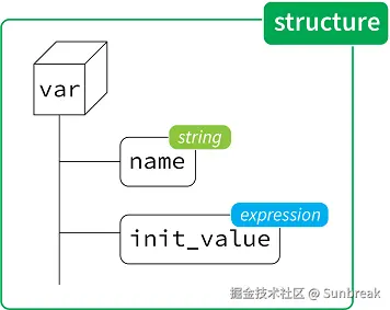 这里有一个小细节:元素name是一个原始(内置)类型,而init_value是一个我们需要定义的expression概念的实例。为了清晰起见,让我们将“原始”元素放在左边,“我们定义的”元素放在右边。