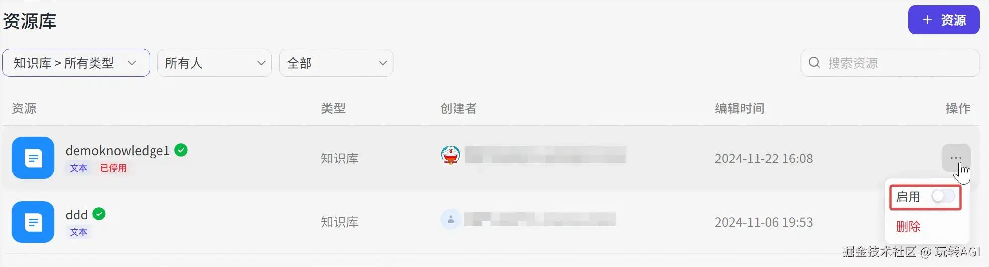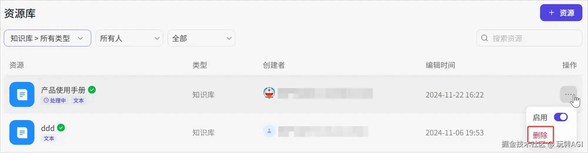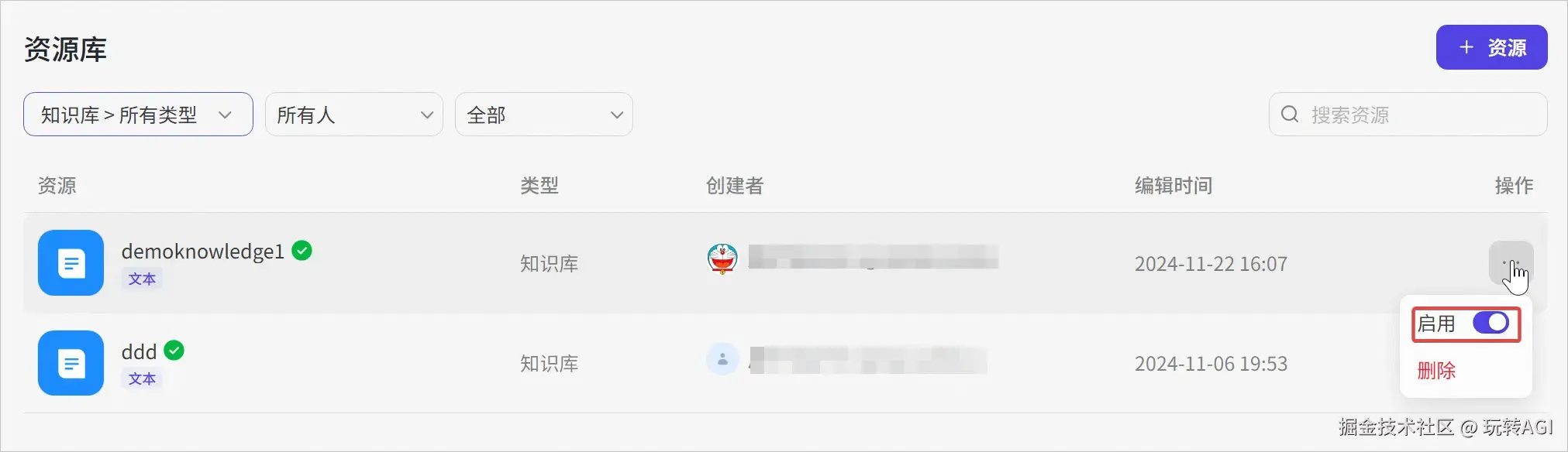 - 知识:知识是供智能体或工作流调用的静态数据,可在空间内共享。由开发者创建和维护,智能体的终端用户无法对知识内容进行修改。