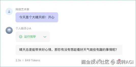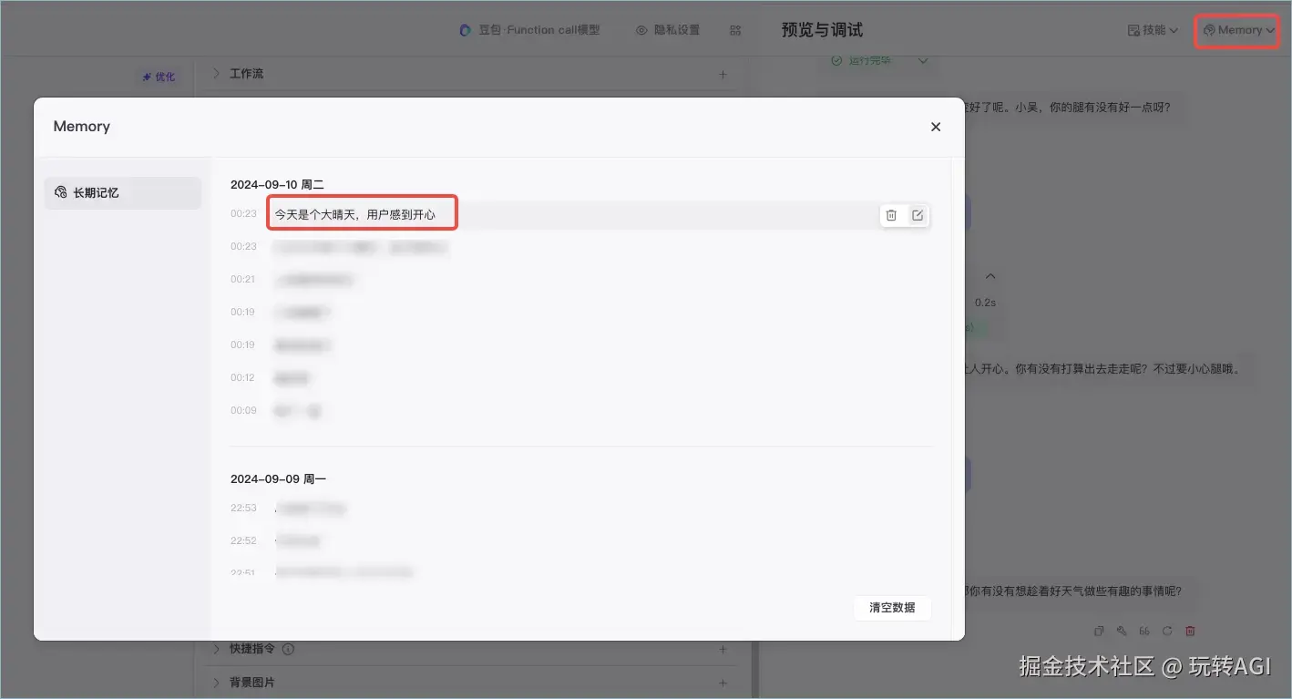 例如,通过对话方式告诉智能体今天的天气,智能体会自动将其记录在长期记忆中。