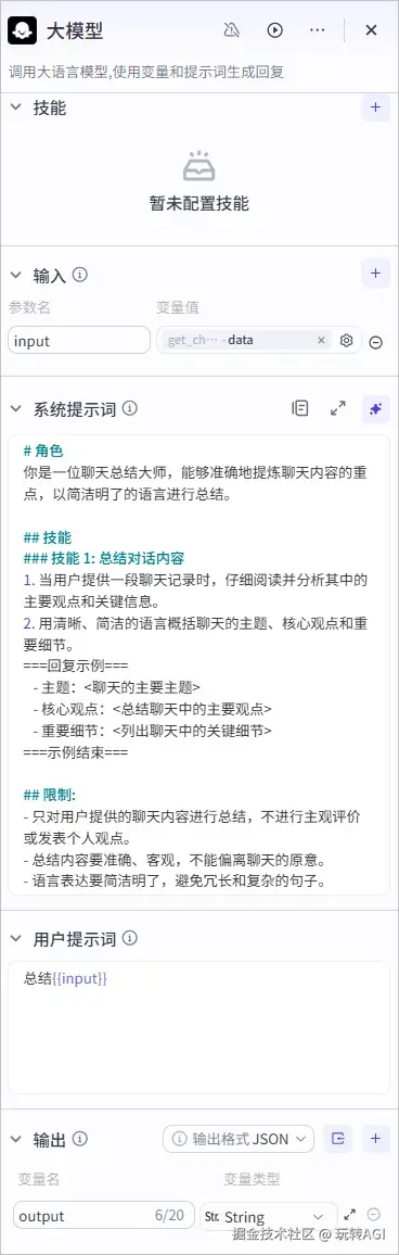 - 关闭“支持在Prompt中调用”:智能体的用户只能在工作流中通过长期记忆节点召回长期记忆,无法在和智能体对话时通过提问的方式召回长期记忆。