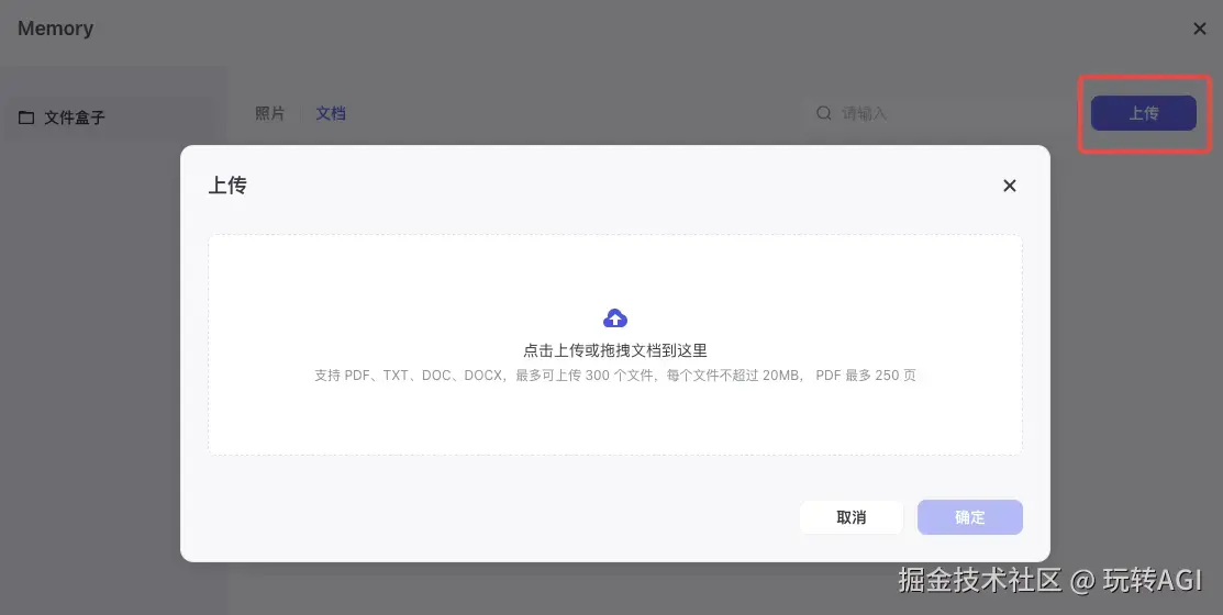 文件盒子基于合规和隐私保护统一存储和管理用户上传的图片、文档、表格等常用文件,在面向复杂的用户任务场景(例如为智能体搭建相册、记账本等能力)时,通过文件盒子可以反复使用已保存的多模态数据。当用户使用智能体时,通过自然语言即可管理或使用文件盒子。常见的操作如下:
