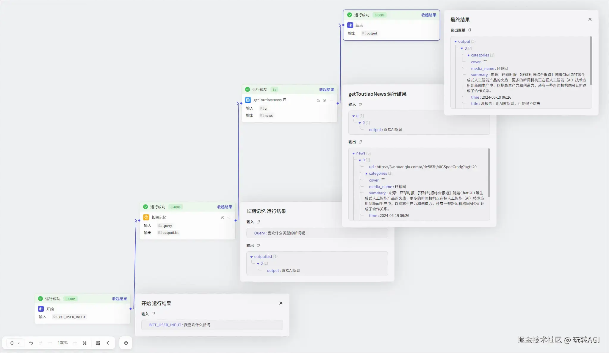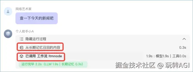 例如对于查看热点新闻的工作流,可以召回用户的长期记忆,根据用户喜好来筛选出其可能感兴趣的内容。
