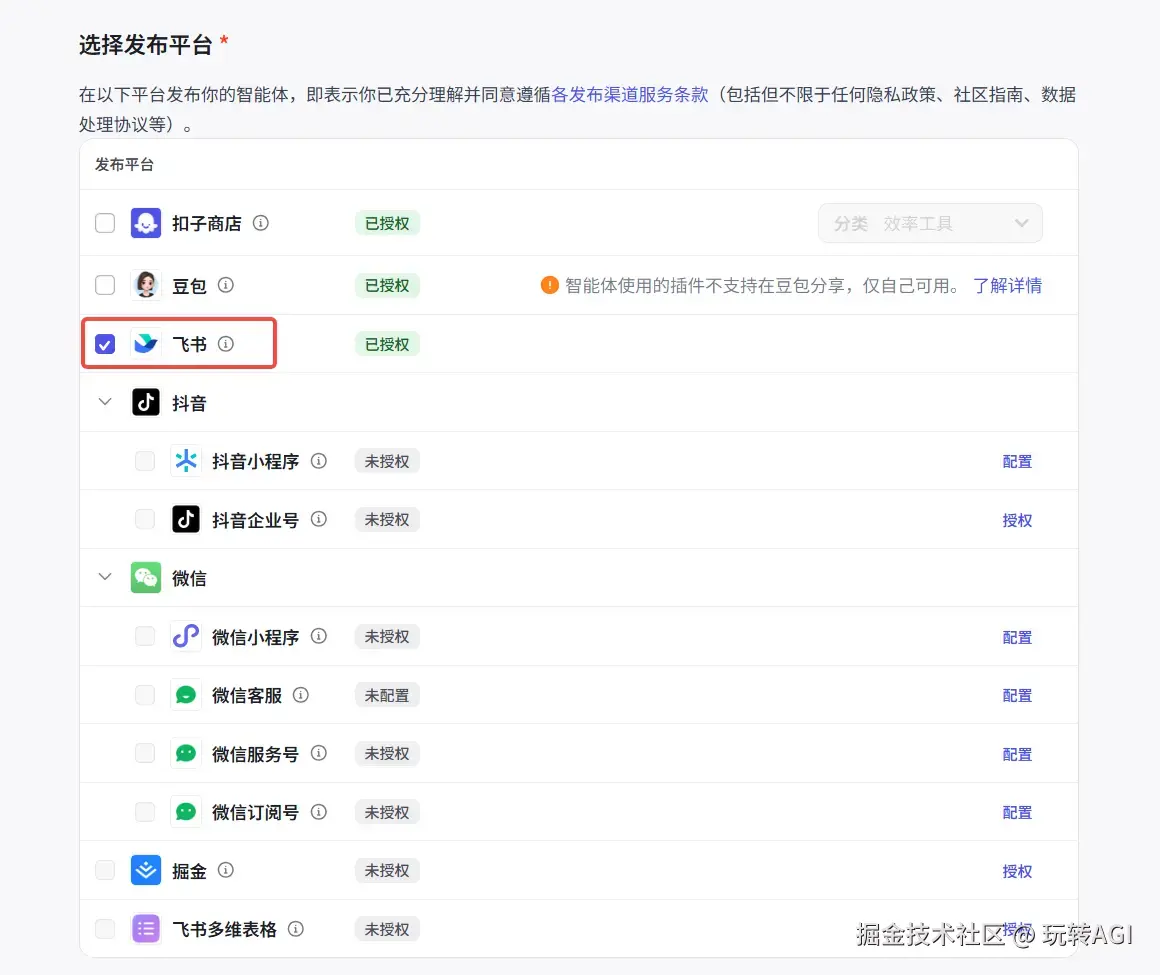 扣子支持用户将授权过的飞书文档上传到知识库,特定的配置说明如下: