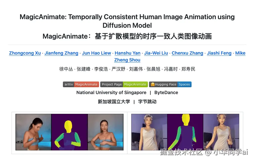 由 MagIC Research 团队(新加坡国立大学 & 抖音 ByteDance)于 2023 年在 CVPR 2024 发布,GitHub 公开后迅速爆红,目前已有 11.1k ⭐️、1.1k forks。它突破传统帧扭曲方法,通过扩散模型+时序编码,实现高保真一致动画,是当前最强人体图像动画技术之一!