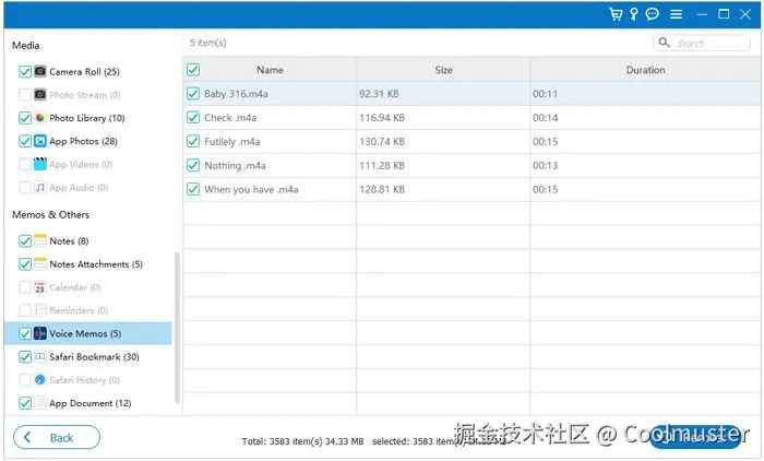 Coolmuster iPhone Data Recovery是另一款功能强大的数据恢复工具,它允许您从 iTunes 备份中选择性地恢复修剪过的语音备忘录,而无需恢复整个备份文件。它确保您将现有数据保留在设备上,并防止数据丢失或覆盖。