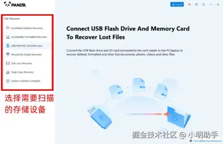 除了数据 蛙恢复专家,还有Panda Data Recovery也是一款不错的恢复数据软件。这款靠谱的数据恢复软件拥有值得信任的兼容性,大部分的存储设备都能够安全进行扫描,其中包括计算机硬盘、移动硬盘、存储卡等。它同样拥有较为简洁的页面,但因为是全英页面,可能会给部分用户带来一些困扰。