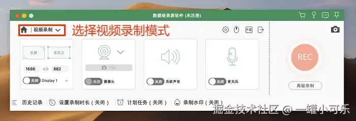 步骤1:在苹果电脑的桌面找到数据 蛙录屏软件并打开,打开软件后,根据需求选择合适的录制模式,如 “视频录制” 。