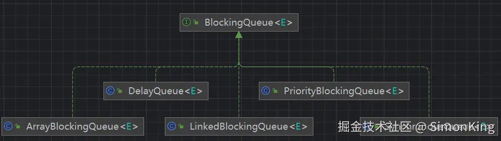 ThreadPoolExecutor默认使用的就是LinkedBlockingQueue管理待执行的任务。 - 生产者-消费者模型:生产者填数据,消费者取数据,队列满/空时自动协调。