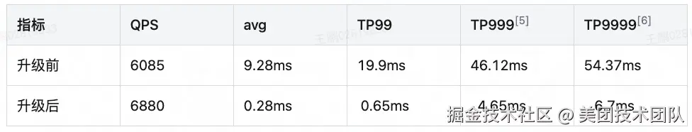 分析接口耗时统计:可得到以下数据,发现耗时均有明显下降,9999线的下降量低于理论的17ms,由于实际环境中其他因素的影响也基本符合预期。