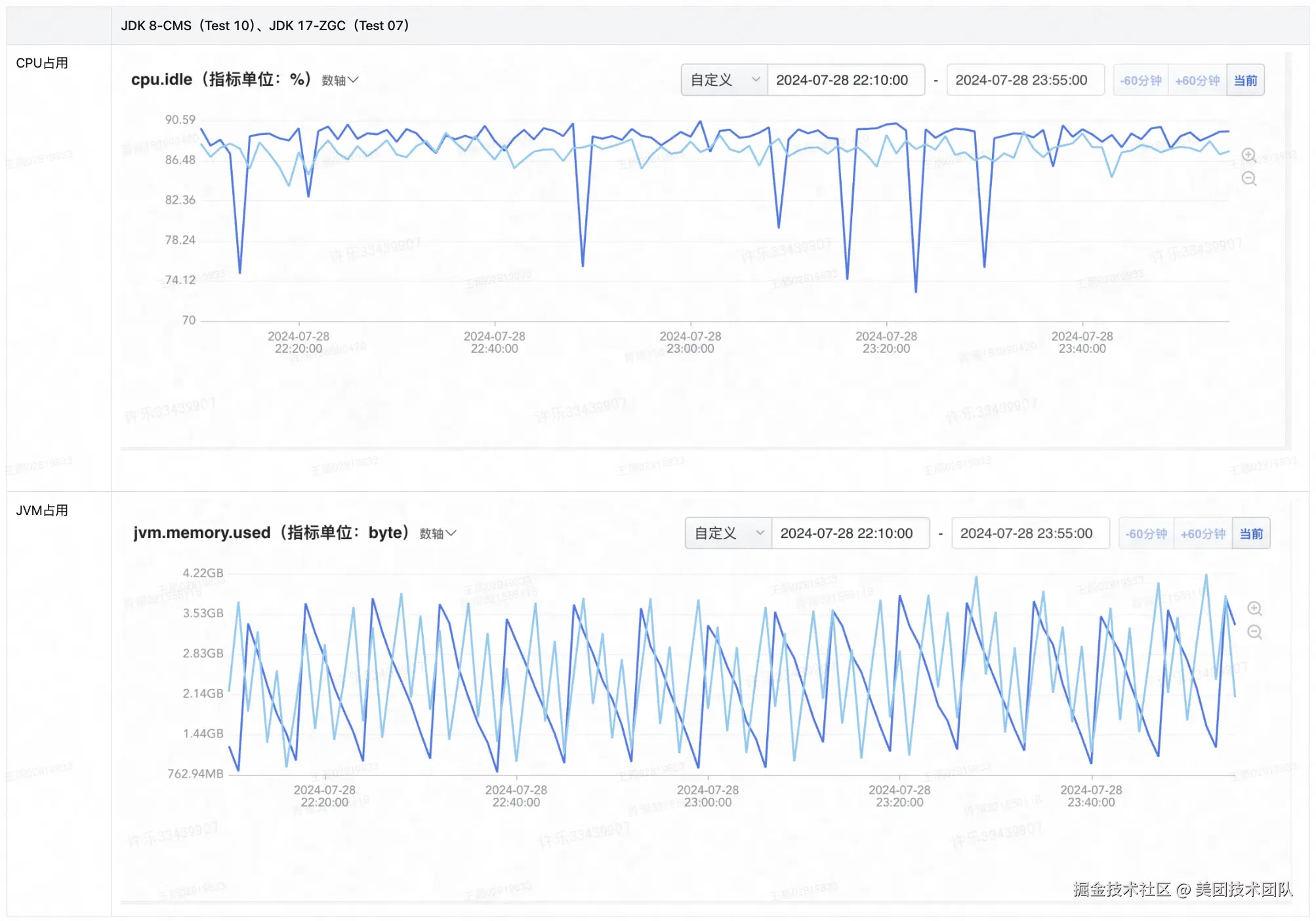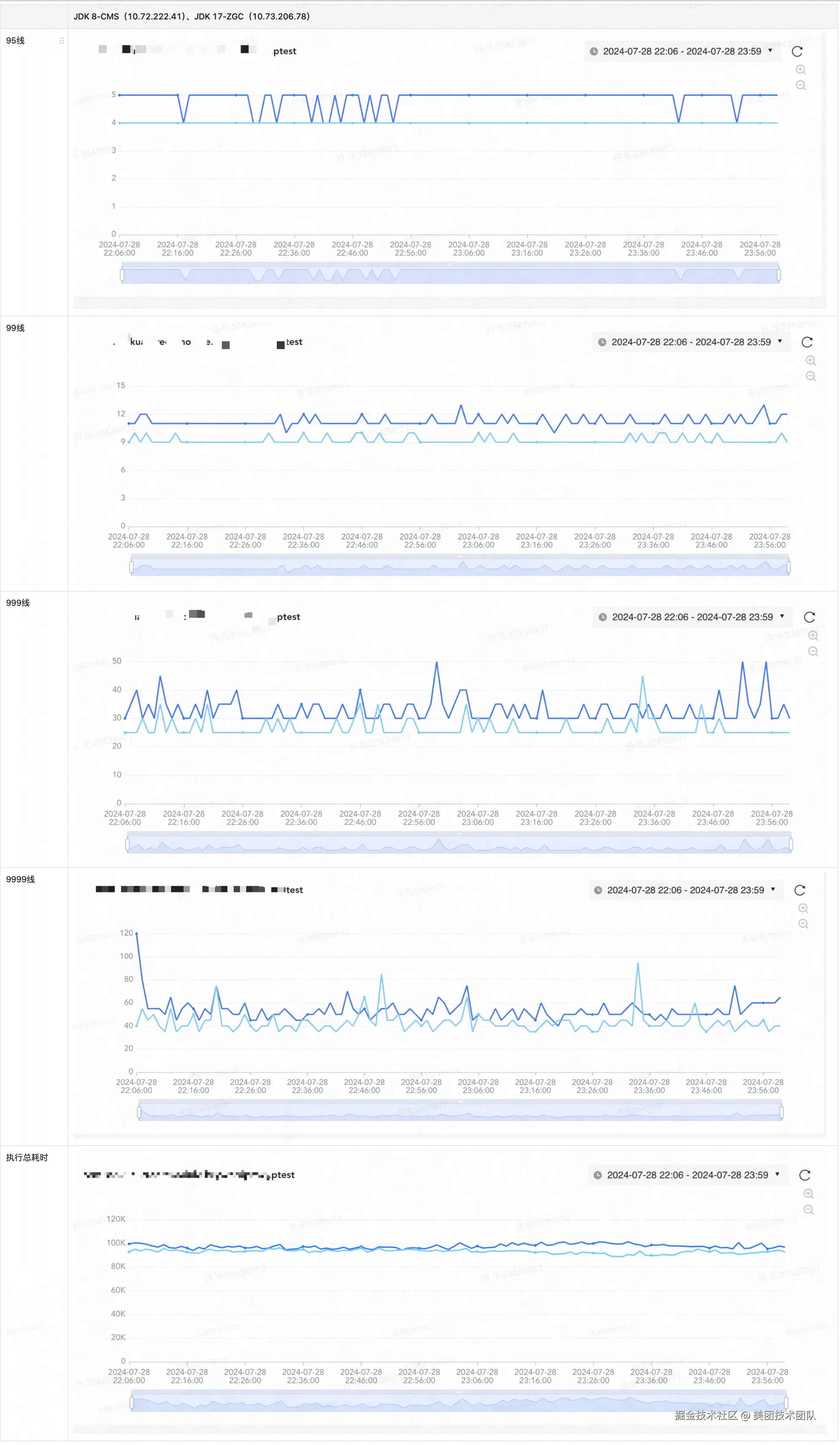 运行15天,JDK11机器长时间不重启三九、四九线会逐渐升高,JDK 17机器较为稳定。