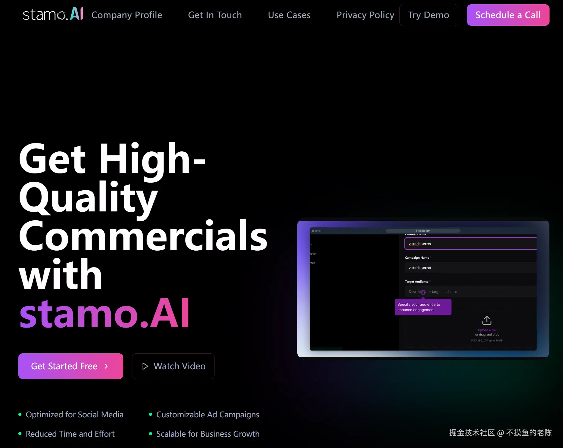 Stamo AI是一款AI视频制作工具,为产品提供高质量的商业视频。