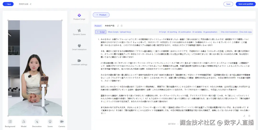 在直播后台,可以创建和管理产品,包括新建及修改单个产品、上传音频或文本话术、设置主播使用的语言、语速及音色等。这些功能有助于丰富直播内容,提高观众的购物体验。