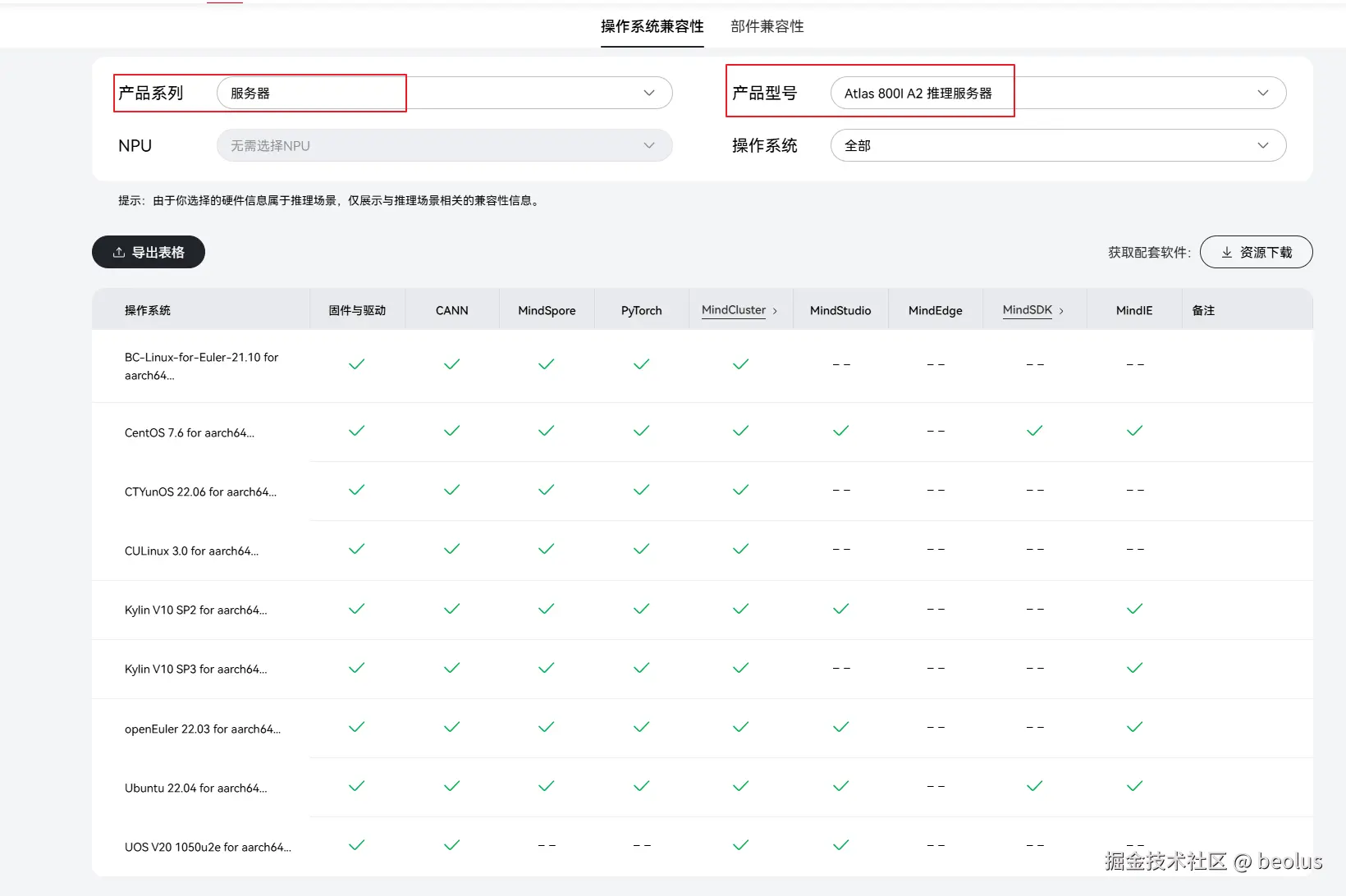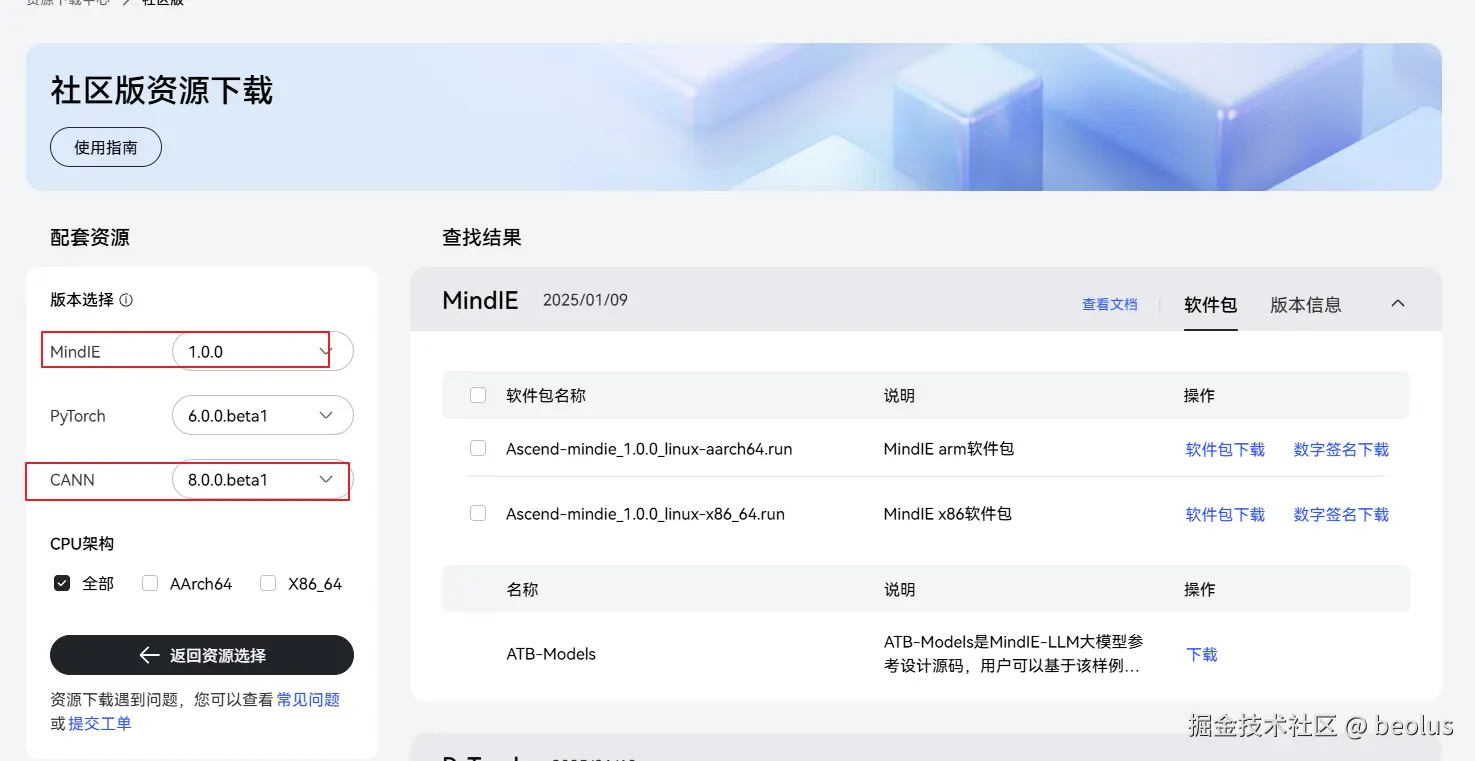 根据上面步骤3确定的CANN版本,来选择配套资源;也可以勾选CPU架构。