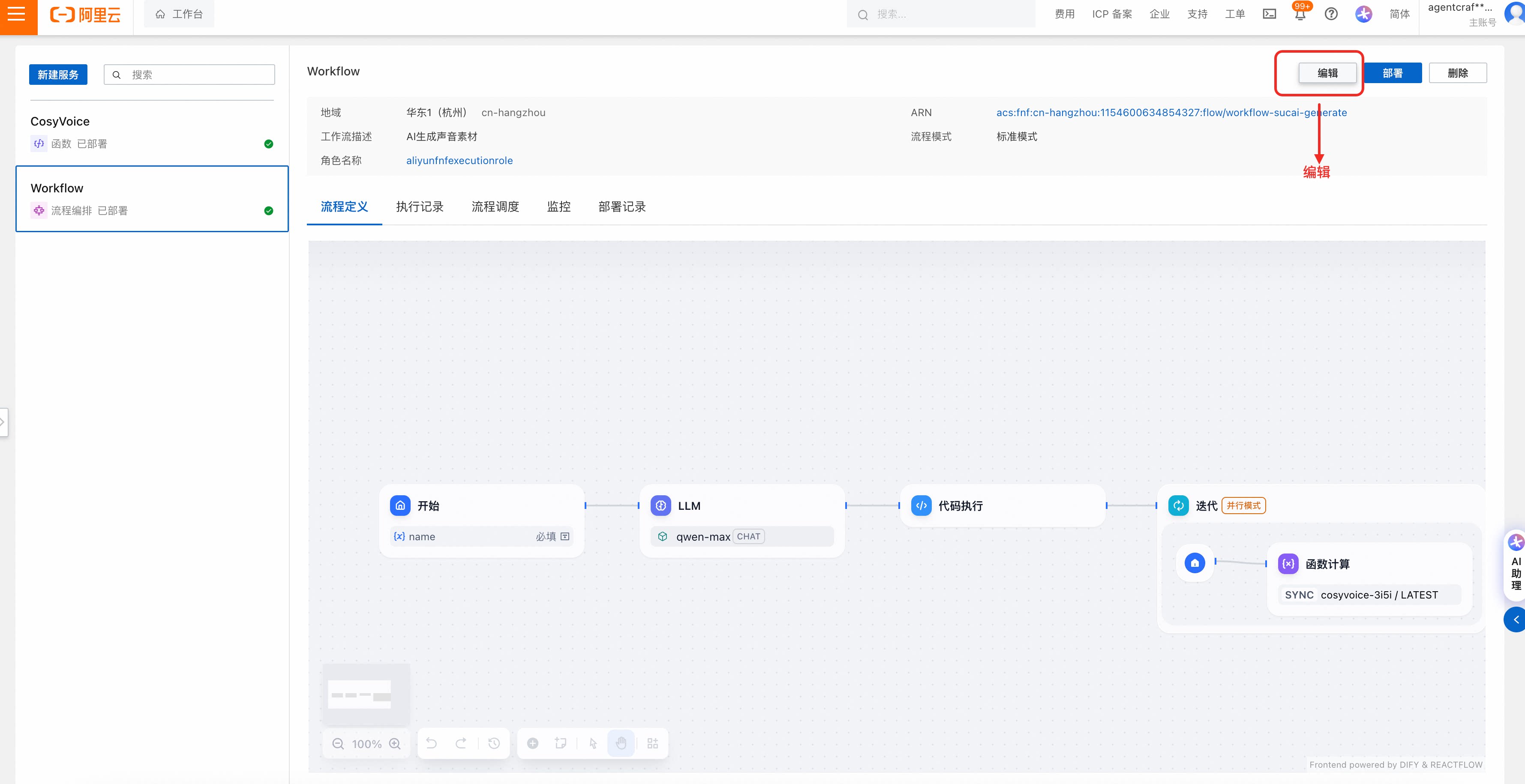访问cap.console.aliyun.com/template-de…获取工作流模板