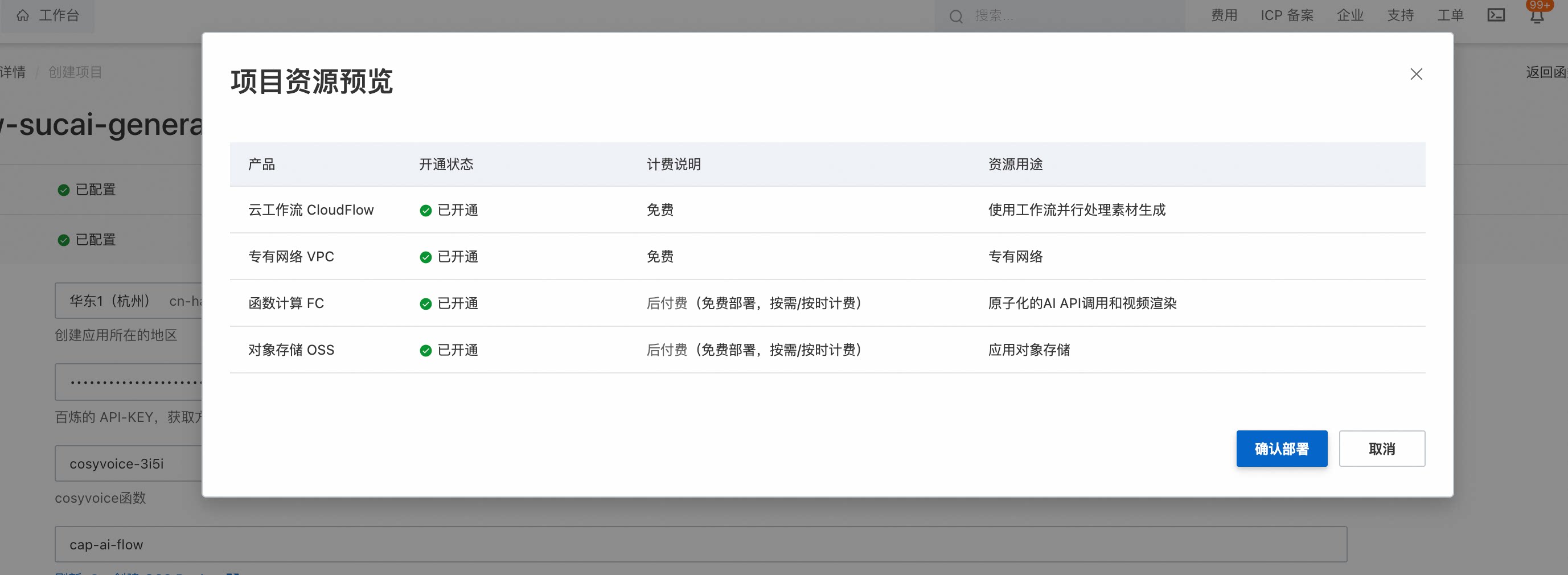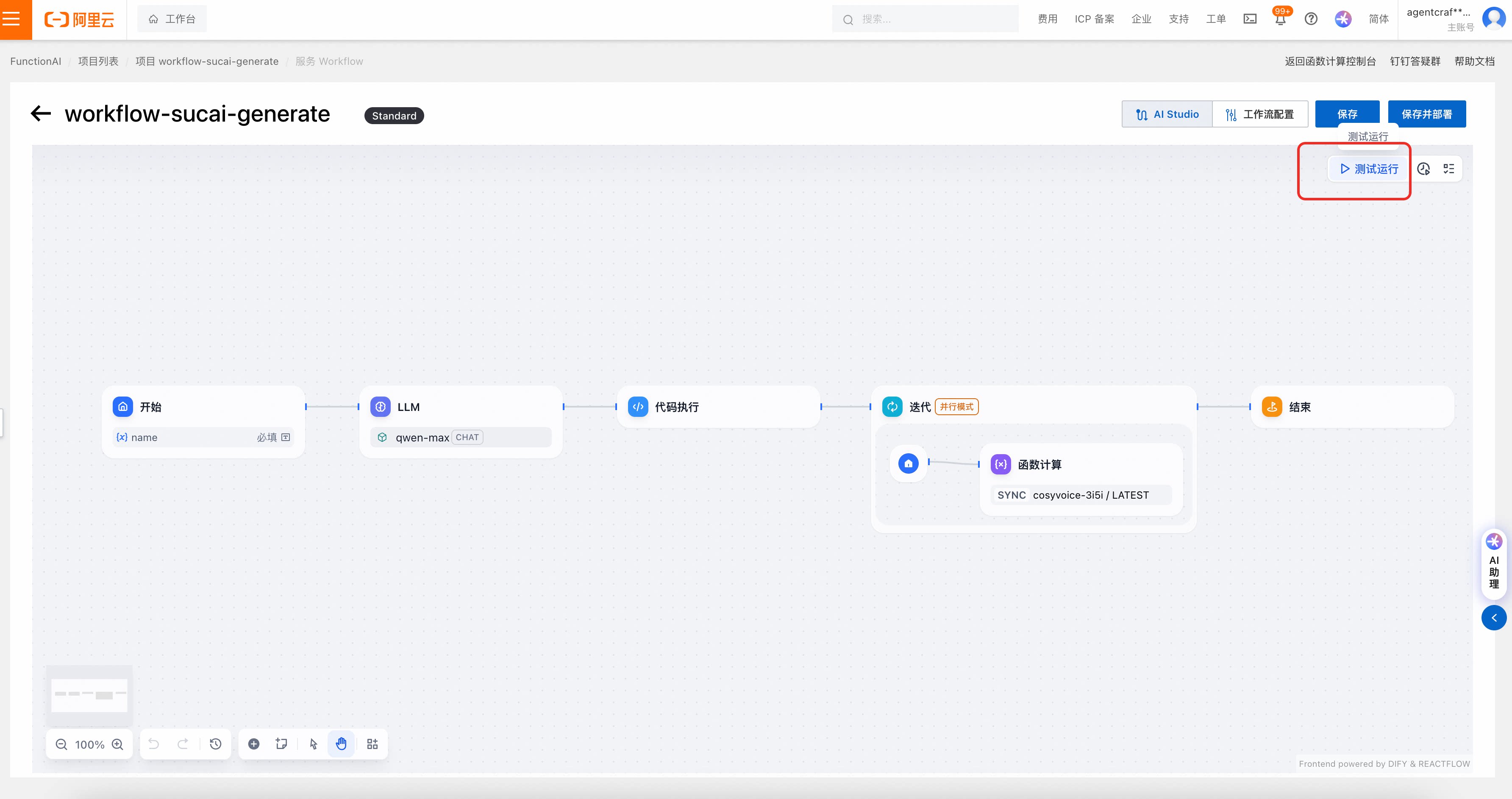 | 函数计算节点 | 调用 TTS 接口生成音频并上传 OSS |