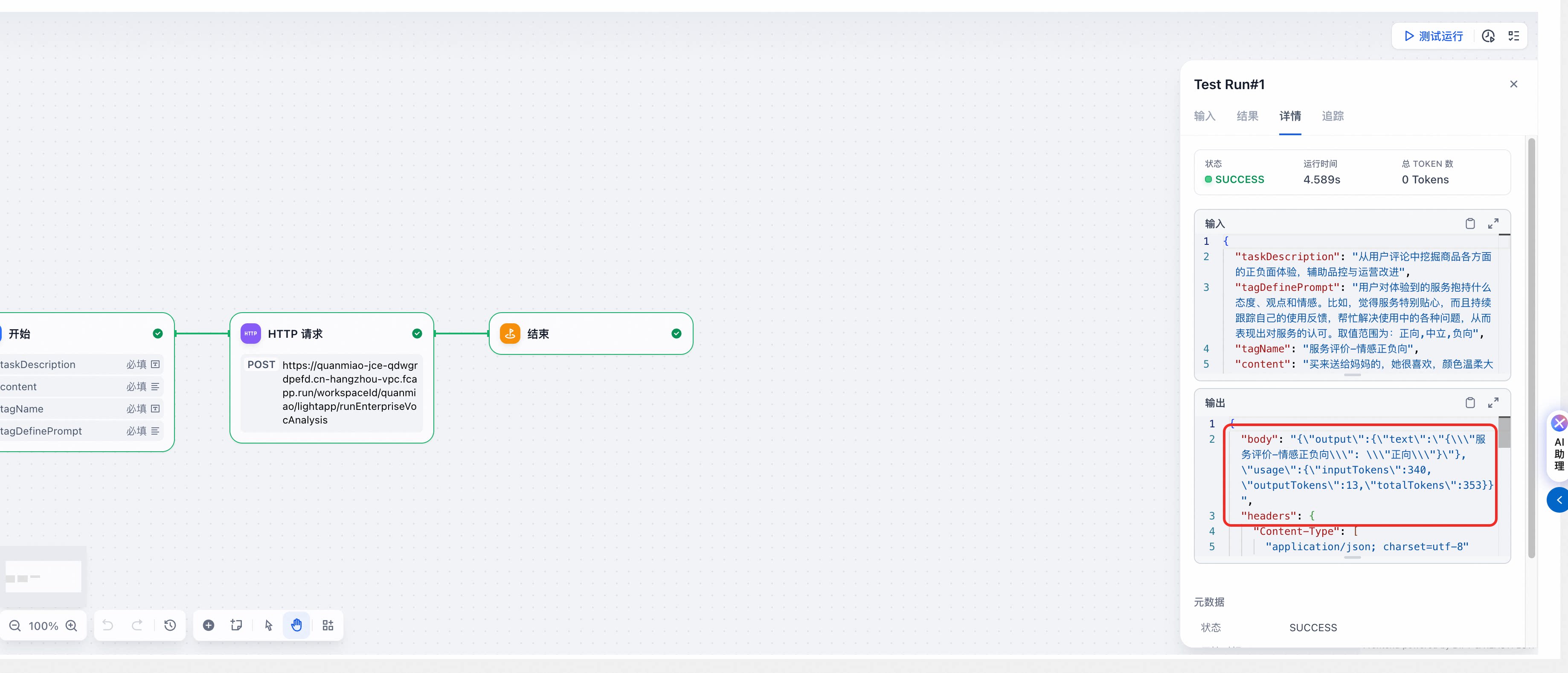 | http节点 | 访问阿里云百炼全秒VOC挖掘服务(会自动帮您创建全秒VOC挖掘服务) |