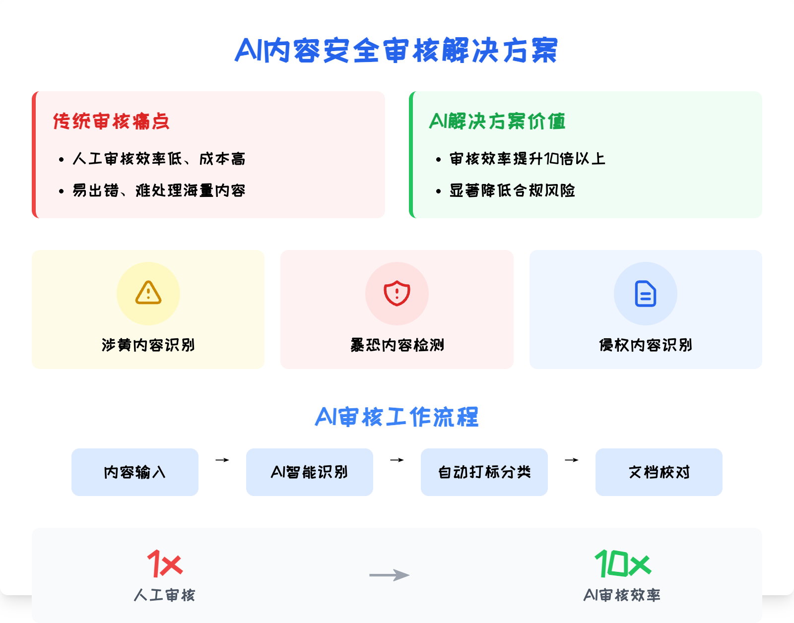 业务背景: 平台型企业需要对用户生成内容进行合规审核,确保内容合法、健康。