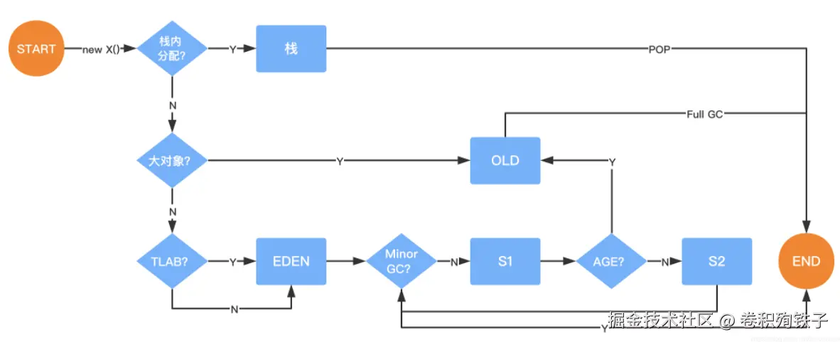 当然了,不是所有的对象实例都能够在 TLAB 中成功分配内存,但 JVM 确实是将 TLAB 作为内存分配的首选。