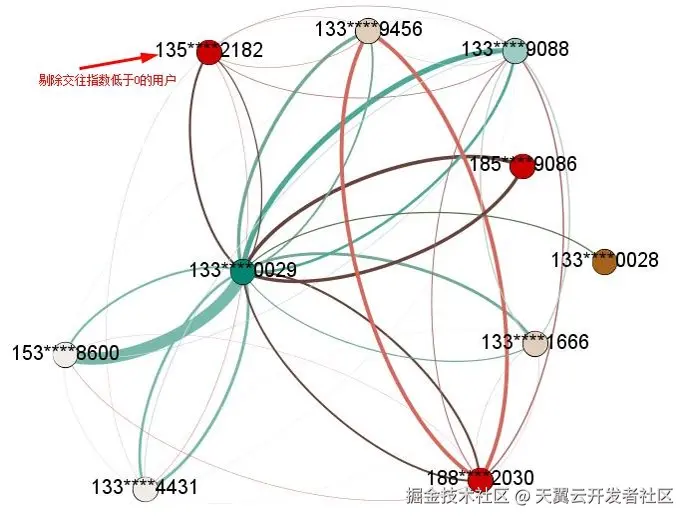 对于关联指数等于0的用户,也应进行剔除。最终得到用户的交往圈关系模型。
