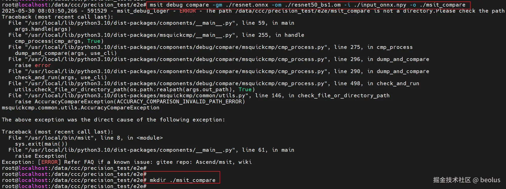 执行msit debug compare报错 比对结果输出路径要先创建出来