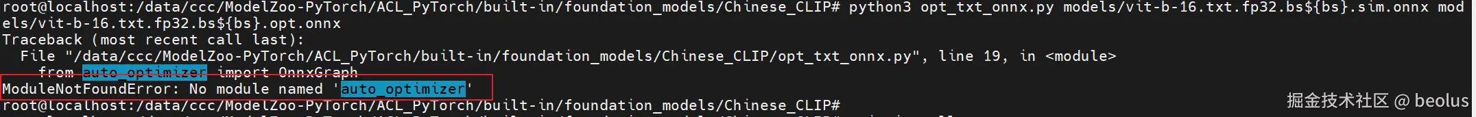 No module named 'auto_optimizer' auto_optimizer是昇腾基于onnx的改图工具,需要安装msit install surgeon即可。