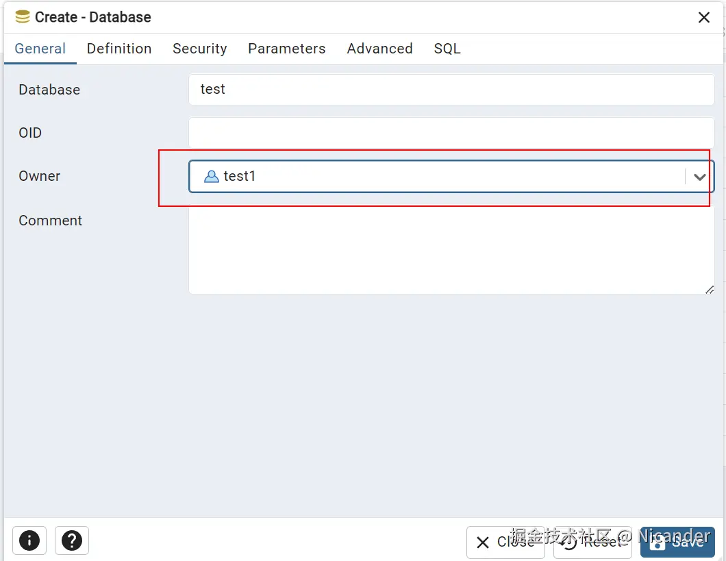 - 新建数据库,并设置 owner 为刚创建的用户