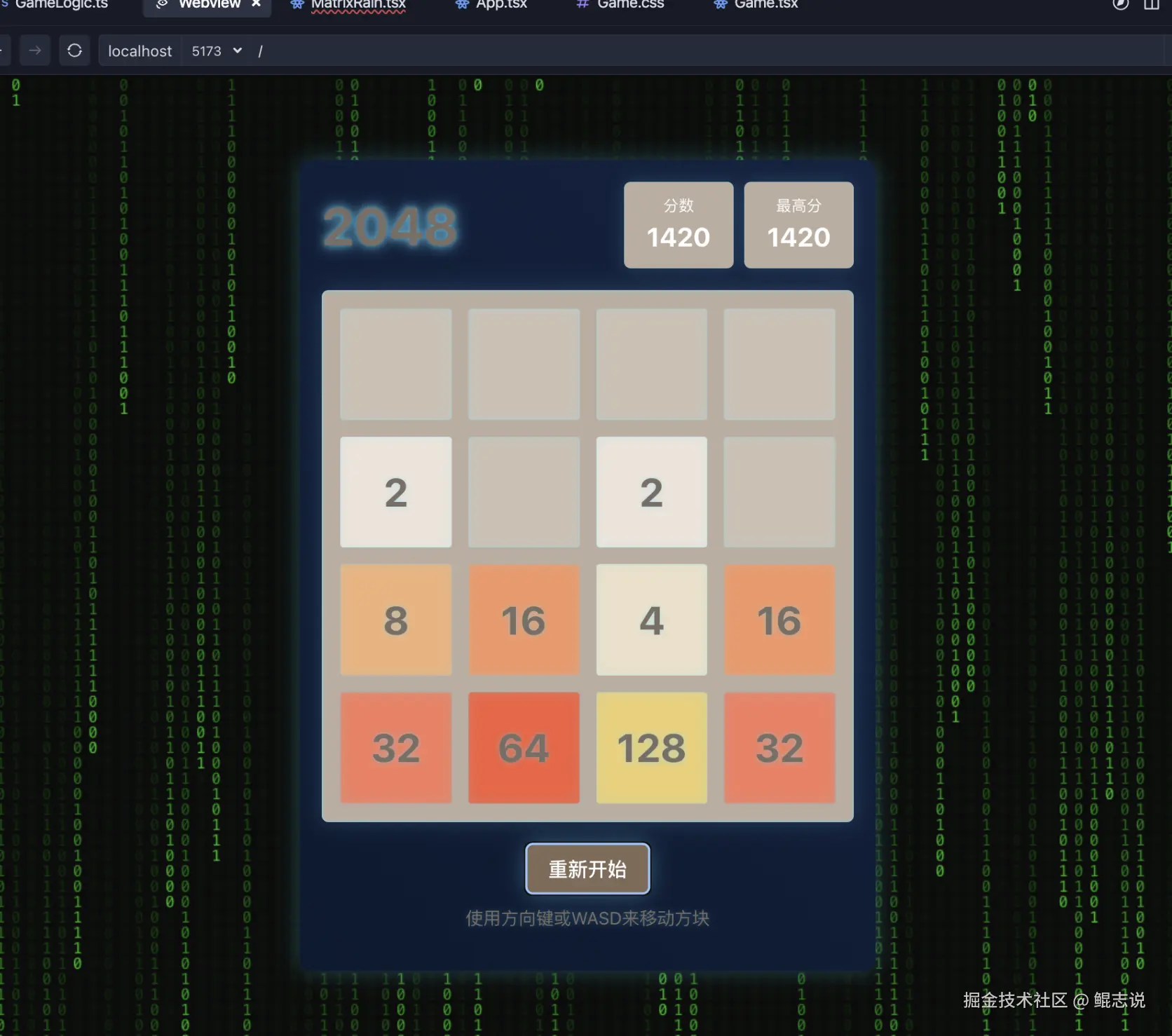 - 实测结果:2048逻辑符合,UI页面符合要求