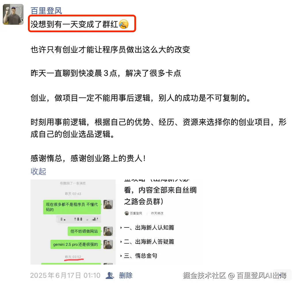 从打工人到创业者,从程序员到做各种AI出海项目,这里面的卡点太多太多了,踩过的坑也太多了。