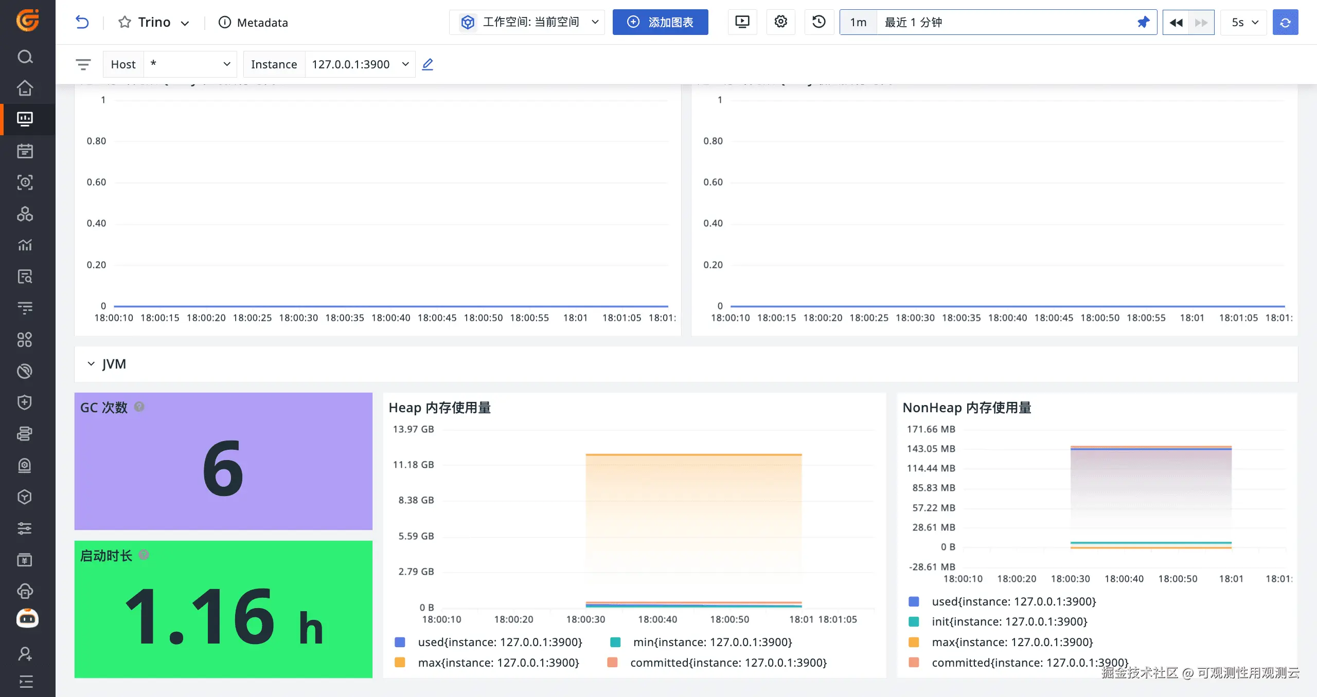 - 系统可靠性:通过持续监控 Trino 集群的运行状态(如节点健康、查询成功率等),可以及时发现潜在问题并采取措施,减少系统宕机时间,确保数据查询服务的高可用性。