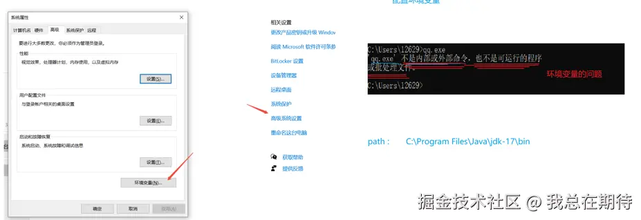 图中环境变量的问题的意思是,我们没有创建这个环境变量,无法在本地的用户目录进行启动,如果想启动,第一个方法就是进入qq的目录输入cmd,第二个方法复制qq的目录写入系统的环境变量