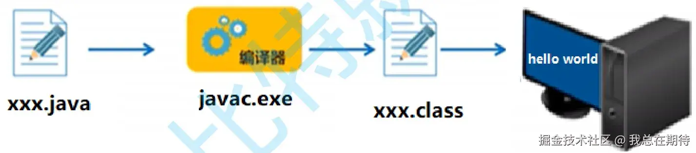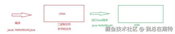 Java是一门半编译型,半解释型语言,javac编译程序把源文件进行编译,编译后生成的class字节码文件,面向JVM的文件,最后启动java虚拟机来运行.class文件,JVM会将字节码转换成平台能够理解的形式来运行