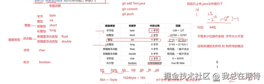 值得注意的是Java不管多少位的操作系统,字节大小不变,没有所谓无符号和有符号的概念,没有正负的概念
