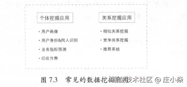 按照个体挖掘应用和关系挖掘应用的分类方式,可以抽象出常见的几类数据挖掘应用场景一在个体挖掘应用中,消费者画像与业务指标预测是两类非常有代表性的场景;而在关系挖掘应用中,相似关系与竞争关系是两类非常通用的关系挖掘应用,在此基础上构建的推荐系统与竞争分析系统,则是电商领域持续关注的两大热门话题。