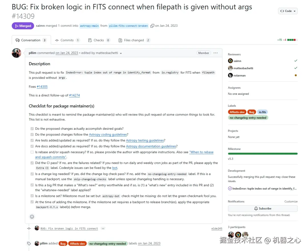 以用 Python 编写的、用于天文学的通用核心软件包 Astropy 及对应的 #14309 PR 为例。