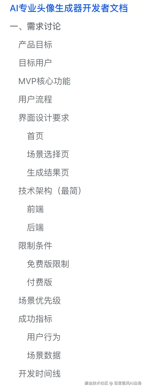 看到一个需求后,第一步,不是直接用Cursor实现一个完整的产品,而是先和AI讨论,写一个开发者文档。(这一步很重要)