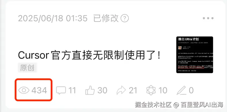 今天写的这篇公众号已经到了400多阅读,目前还在上涨。