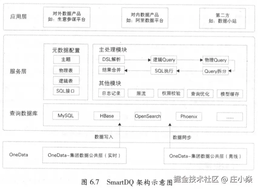 SmartDQ底层支持多种数据源,数据的来源主要有两种:①实时公共层的计算作业直接将计算结果写入HBase;②通过同步作业将公共层的离线数据同步到对应的查询库。
