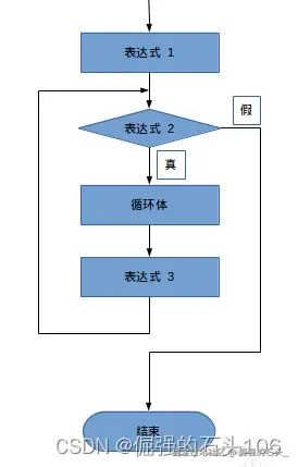 整个循环的过程中,表达式1初始化部分只被执行1次,剩下的就是表达式2、循环语句、表达式3在循环。