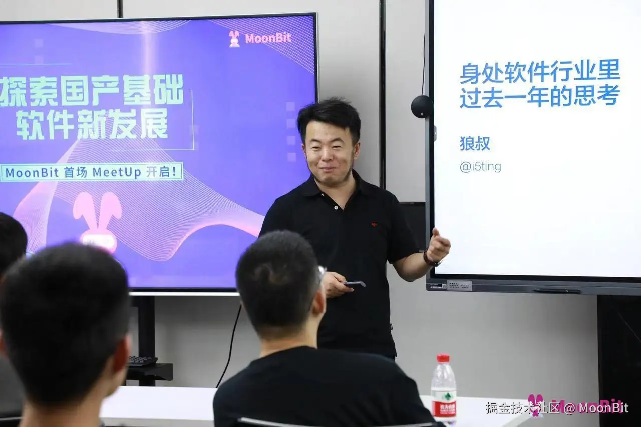 狼叔作为MoonBit 社区荣誉大使,是社区的重要见证人。早在 MoonBit 发展初期,他就积极参与首场 MoonBit Meetup,并与 MoonBit 团队负责人张宏波一起参与知名技术播客《编码人声》探讨 MoonBit 的技术未来。在语言语法、社区运营、开发工具等方面,他也提出了许多中肯而具体的建议。去年 11 月,狼叔还将作为现场嘉宾评委,出席 2024 MoonBit 全球编程创新挑战赛总决赛,与我们一同见证下一代开发者的创造力与突破。