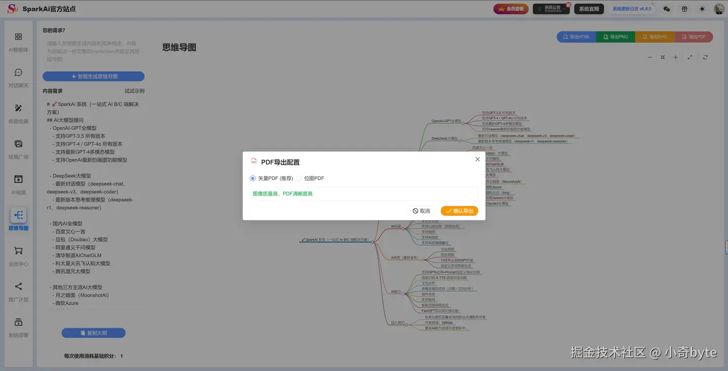 新增思维导图生成PDF导出功能(矢量PDF、位图PDF) 新增思维导图全屏、放大缩小、重置视图功能、思维导图大纲一键复制功能