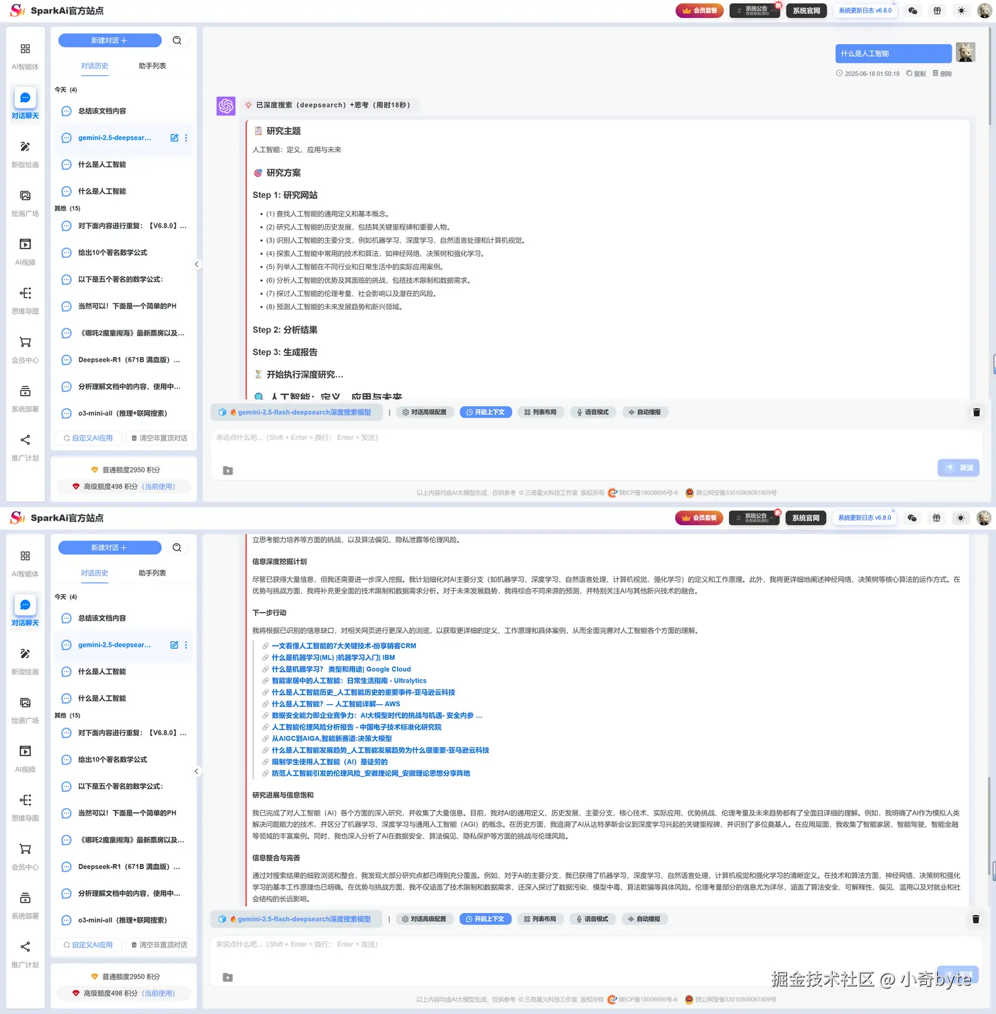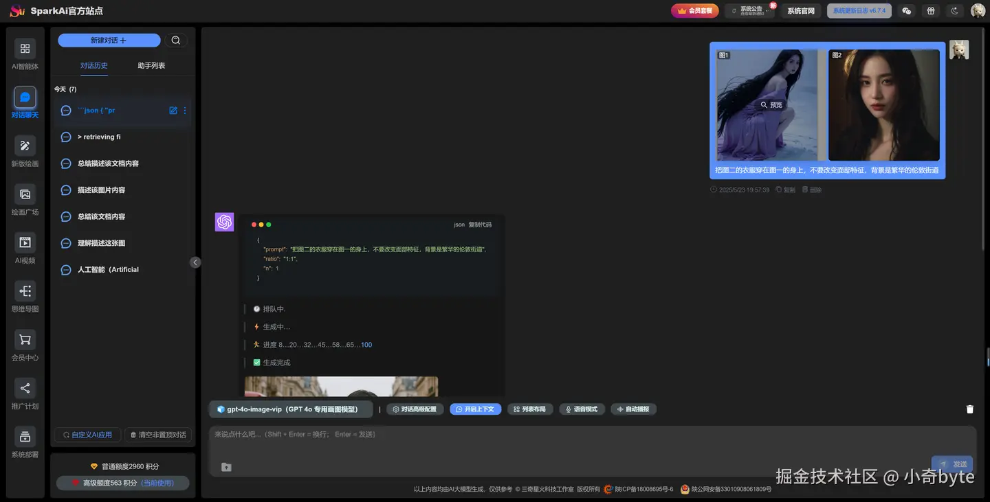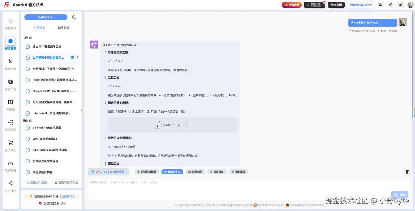 高级模型无需付费(注册即赠送、每天签到等等方式可获取大量大模型使用积分),而且不限使用次数,大家可以自由体验超强的文本生成、AI绘画、代码辅助、知识问答以及多模态互动等各种AI功能。无论你是学生、开发者还是设计师,都可以在这里尽情释放创造力,体验最新最强的人工智能技术。