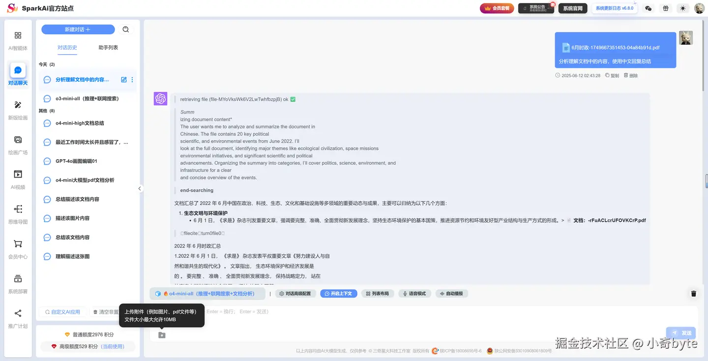 新增支持OpenAI最新o3、o4 推理+联网搜索总结 大模型 新增支持OpenAI最新o3、o4 文档分析+总结大模型