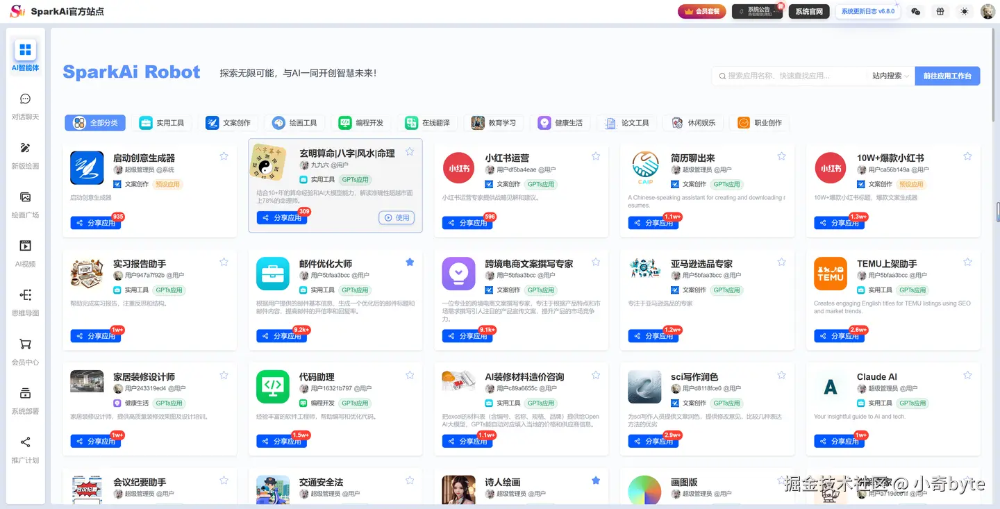新增智能体应用分享功能,可直接通过链接访问对应智能体应用进行使用(后端实现) 新增智能体应用分享链接唯一标识(后端实现、无分享链接唯一标识的原APP应用将会自动创建标识)